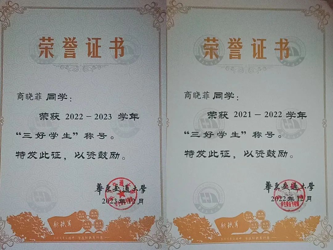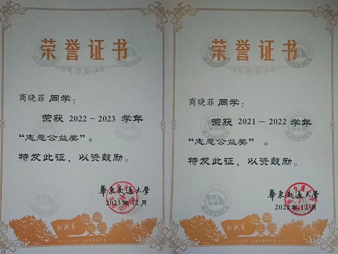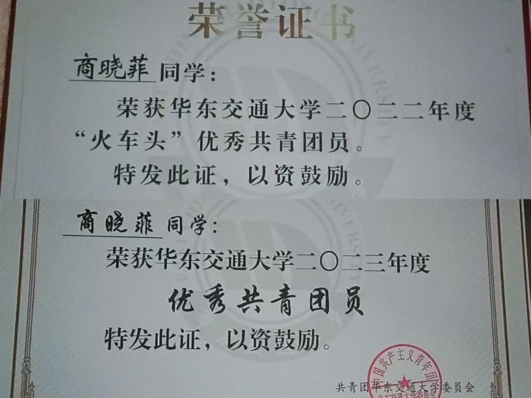 在学生工作方面,曾任院学生会执行主席,同时积极参与志愿服务和社会实践活动,志愿时长达200余小时;在文体活动方面,曾任院田径队队长及学生会文体部负责人,多次参加校运会,曾获女子跳远第四名、女子4×100米接力第六名等。