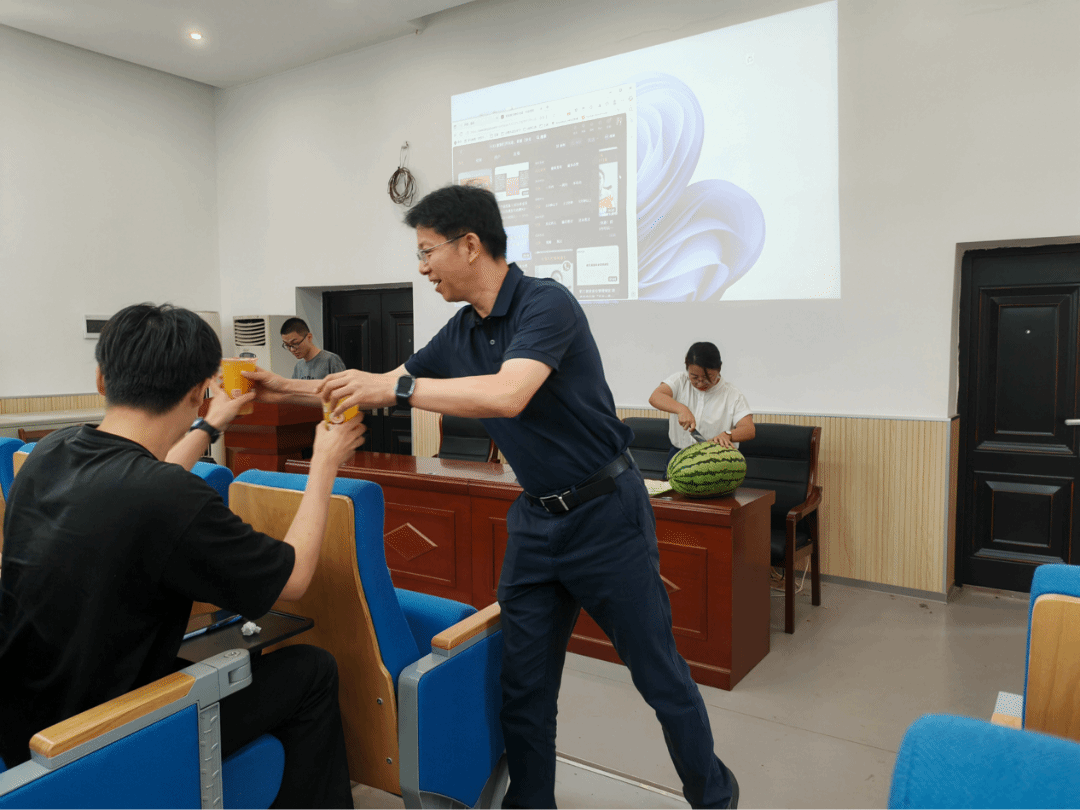 会后,同学们开心的品尝了学院精心准备的甜美西瓜和茶饮,感受着炎炎夏日中的一丝“清凉”。