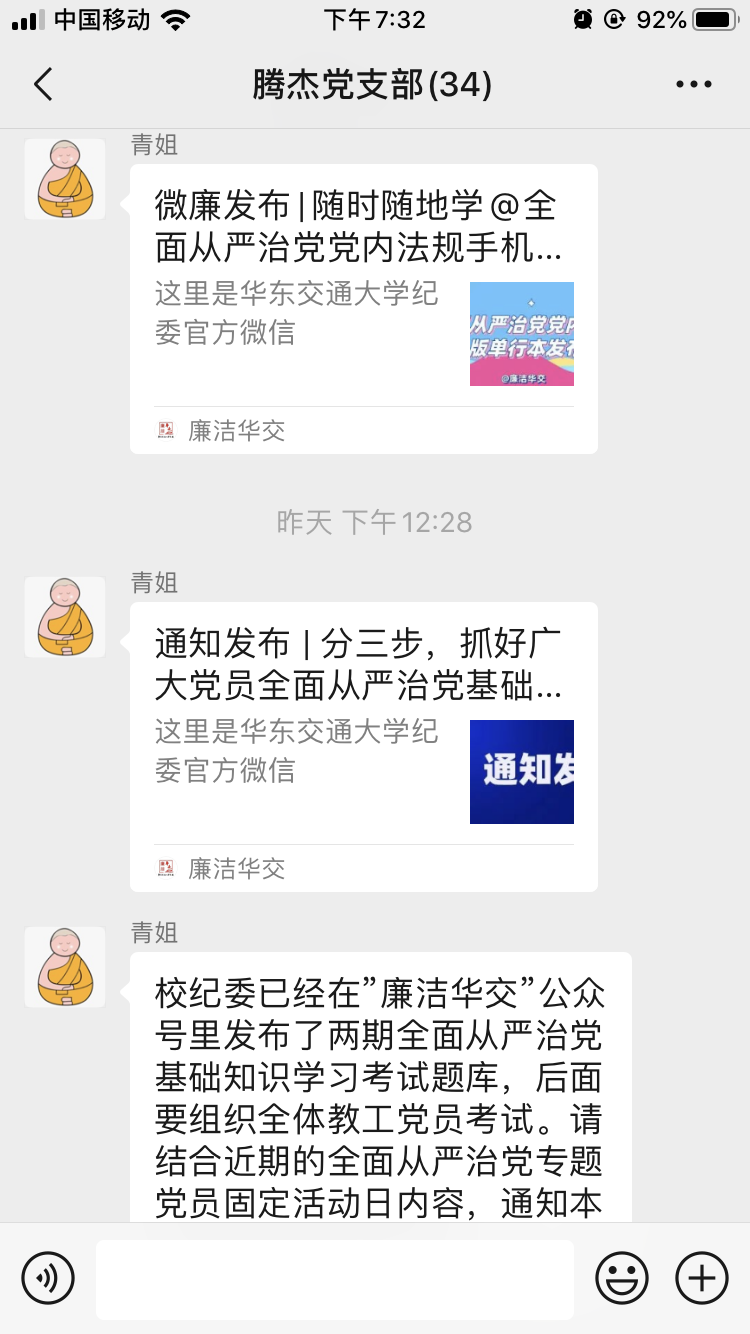 为切实提升广大党员明规知纪、遵规守纪意识,3月26日下午腾杰党支部举行了以“全面从严治党”为主题的线上党员活动日。腾杰党支部全体党员参加本次活动。
