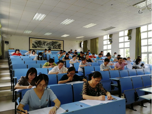 最后,全体教工党员进行全面从严治党基础知识考试。