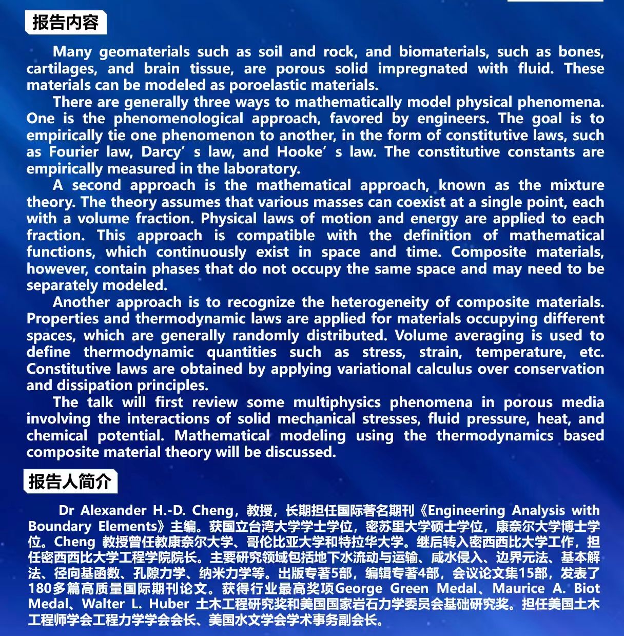 【报告人简介】:高效伟,国家重大专项专家组成员、大连理工大学领军人才、中国航空学会理事、全国工程计算方法联络委员会主任,国际期刊EABE副主编、国际期刊IJCM和国内期刊《推进技术》编委。主要从事边界元、无网格、有限元及其在热流固多场耦合、飞行器设计等方面的研究。主持过美国航天局、国家重大专项等项目50多项;发表中英文专著4部,论文400余篇,其中SCI检索论文280余篇。导出了将任意域积分转换成边界积分的数学公式,提出了精细模拟超薄超细构件的多尺度边界元法;建立了一种新的强形式有限元法--单元微分法、一种新的无网格法--自由单元法;近年来创建了一种全新的数值方法—有限线法。被国务院学位委员会授予“做出突出贡献的中国硕士学位获得者”荣誉称号,获国际华人计算力学学会会士奖、教育部和辽宁省自然科学奖等,2024年被列入斯坦福大学发布的全球前2%科学家榜单。