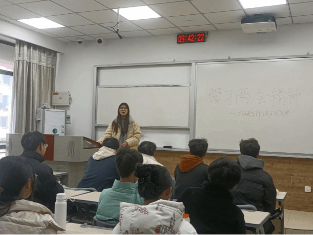 在23信计1班的团日活动中,团支书吴旭蓝通过专题文章和视频深入解析了中国两会在当前历史节点的特殊意义。今年不仅标志着中华人民共和国成立75周年,也是“十四五”规划关键的实施年,更是全国人民代表大会成立70周年的重要时刻。吴旭蓝表示,两会的召开具有特殊的纪念意义,我们要积极学习,及时了解国家实施的政策,更加关注国家未来的发展,将小我融入大我,自觉做推动国家发展的参与者和实践者。