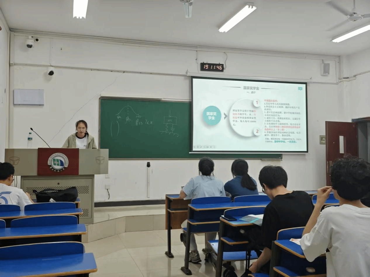 宣讲过程中,五位宣传大使通过PPT讲解、互动问答等方式,对国家奖学金、国家励志奖学金、学校优秀学生奖学金及勤工助学等项目的申请条件、评审流程和资助标准进行系统解读。结合具体案例阐释政策要点,帮助同学们全面了解资助政策,内容涵盖国家奖学金、国家励志奖学金、学校优秀学生奖学金、勤工助学等项目的申请条件、评审流程及资助标准,通过“政策解析+案例分享”的立体化呈现,帮助同学们构建起对资助政策的清晰认知框架。针对生源地助学贷款,详细说明其申请条件、办理流程、还款方式及注意事项,着重强调借款人的诚信责任与义务。