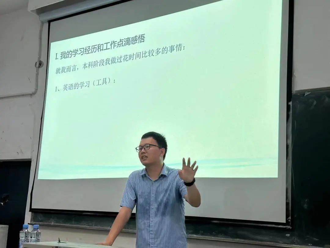 随后,他向同学们介绍了本科阶段利用大量时间所做的事情—学习英语,讲述了学习英语的过程、感悟,并强调了学习英语的重要性。此外,他认为要注重班风和寝室氛围问题,要让寝室成为学习的地方而不是聚集打游戏的地方,要让寝室充满正能量。