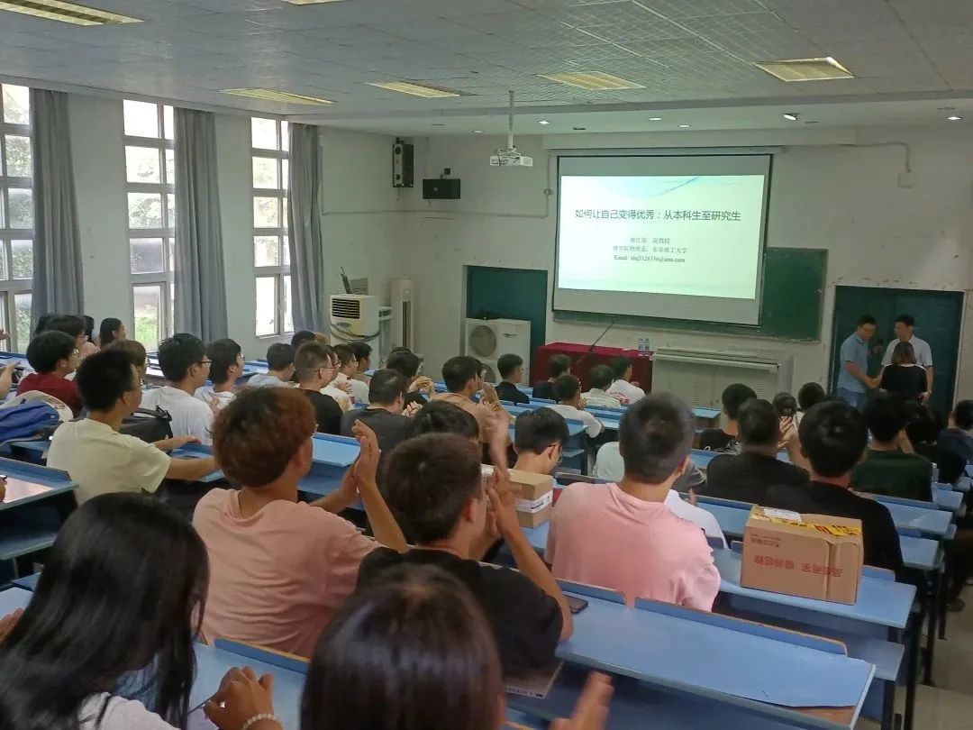 讲座伊始,谢红强学长对自己做了简单的介绍,然后他分别从成绩、广度、兴趣、效率等方面讲述了自己的学习经历和工作点滴感悟,他特别提到成绩和效率问题,鼓励同学们找到适合自己的学习方法,端正学习态度,潜心学习。他也要求同学们养成读书的习惯,通过广泛阅读、通读其他学科知识,课外书籍等提升自我修养和文化水平,感兴趣的事情应力求做到极致,唯有勤奋才是最重要的品质。